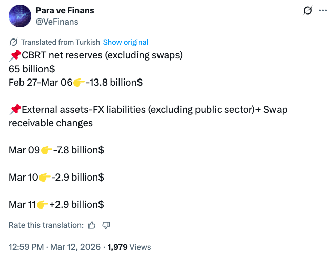 Tweets: Interventions are reflected in the central bank's account balance with a one-day lag. Data indicate strong foreign exchange demand on the first trading day (Monday, March 2) and the last trading day of the first week of intervention (Friday, March 6).