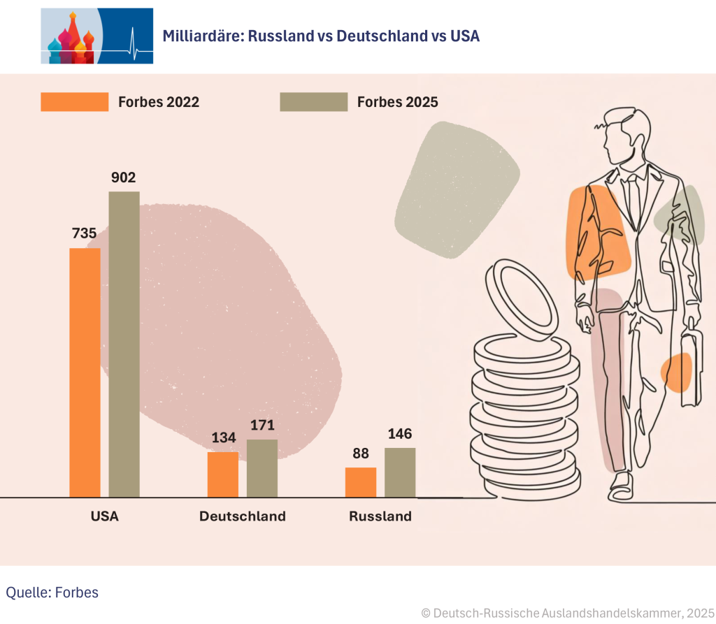 There are two drivers: on the one hand, high prices and stable export revenues, and on the other, takeover opportunities in the wake of Western companies pulling out. At the same time, new billionaire fortunes have emerged in domestically oriented sectors such as retail, agriculture, housing construction, and e-commerce.